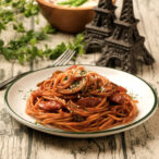 ・ボンゴレ ロッソ(トマトソースをベースにあさりの旨味がきいたパスタ、あさりの砂抜き、パスタの茹でる時の塩がポイント)